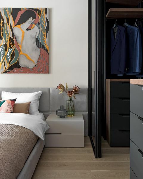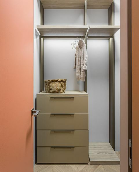 Дизайнер Татьяна Вакуева: "Минимальная ширина гардеробной должна составлять 145 см (если планируете интегрировать в нее выдвижные ящики, прибавьте еще 45 см). Обратите внимание на угловые композиции: важно избегать пересечения выдвижных элементов. Комоды и выдвижные полки лучше устанавливать в самой глубокой части гардеробной, чтобы можно было спокойно пользоваться открытыми ящиками и не упираться спиной к стене. Также в небольших гардеробных следует использовать двери с открыванием наружу или сдвижные конструкции, чтобы в открытом состоянии полотно двери не закрывало часть одежды. А еще постарайтесь предусмотреть место для зеркала в полный рост и пуфика, на который можно складывать неподходящие вещи во время примерки". | | | |